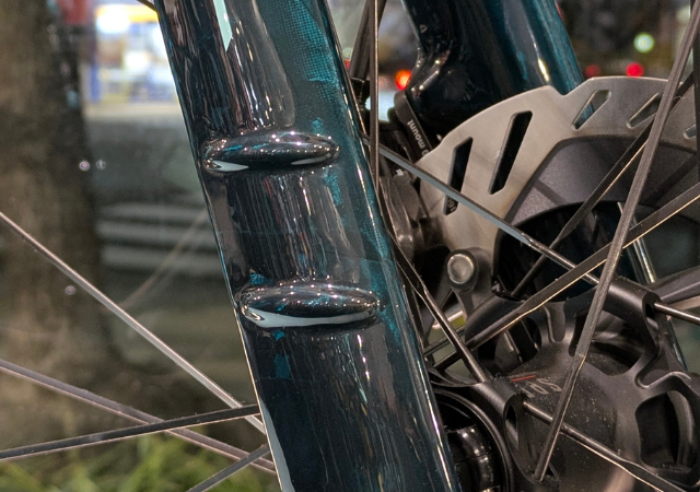 軽量だけじゃない、空力の知見データをもちいたフレーム各所に見られる、エアロなデザイン。