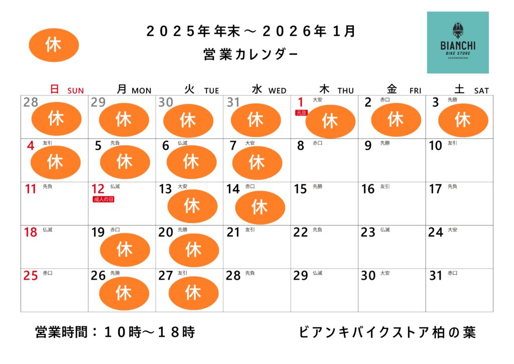そのため2026年1月13日(火)と14日(水)が店休日となります。