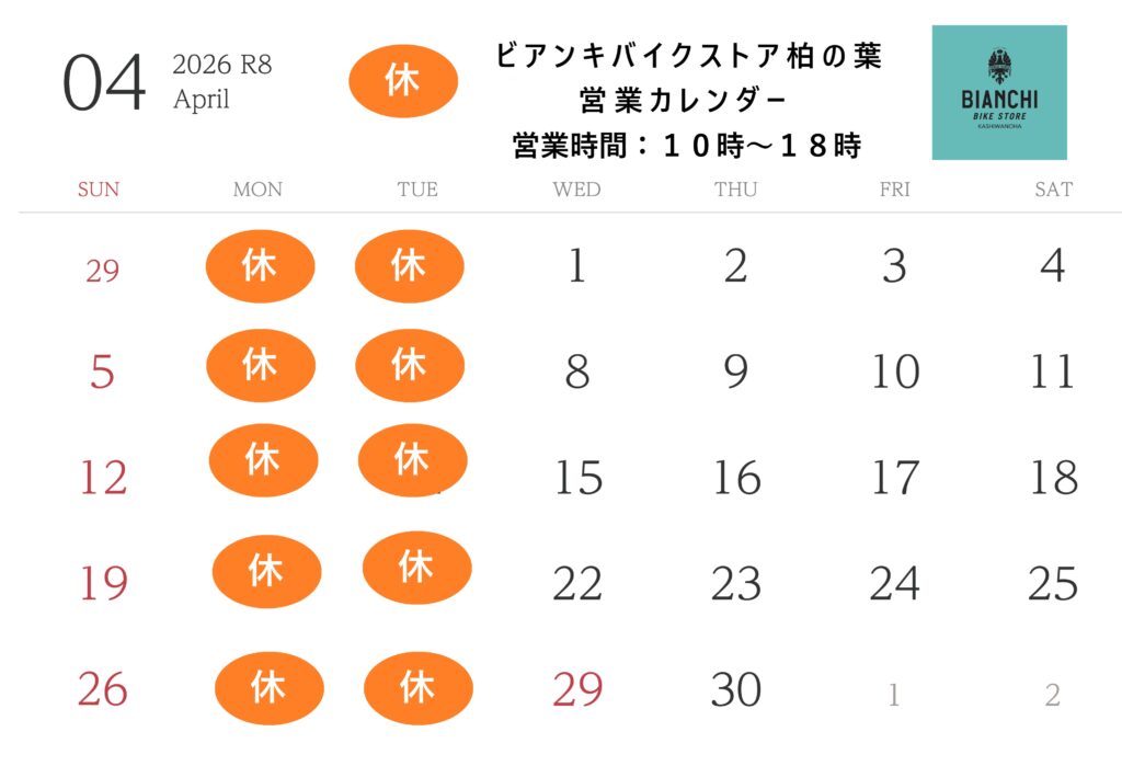 定休日:月・火曜日ですが、以下の通り変更がございます。