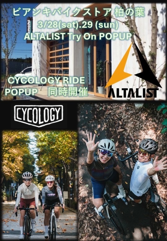 「CYCOLOGY」(サイクリングウェアブランド)と「ALTALIST」(サングラス)のポップアップを開催いたします。