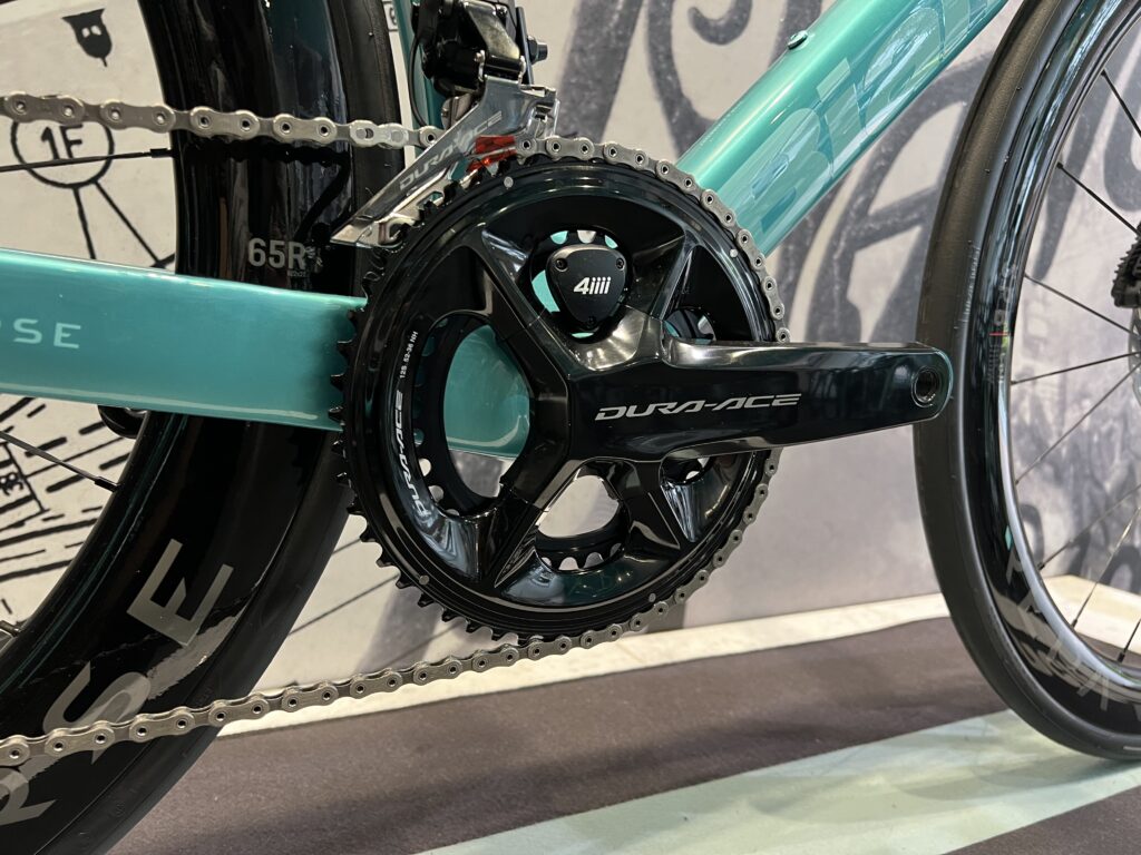 シマノコンポーネントの中でもトップグレードのDURA ACE DI2に4iiiのPRECISION 3+が標準装備。